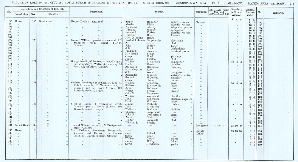 Glasgow Valuation Roll VR 1913-14, Ward 25, p213