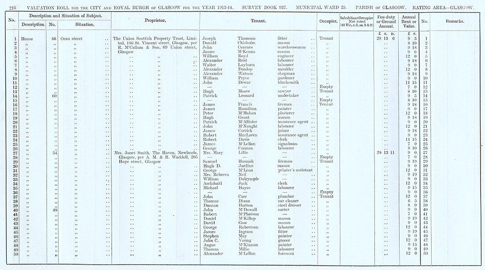 Glasgow Valuation Roll VR 1913-14, Ward 25, p215