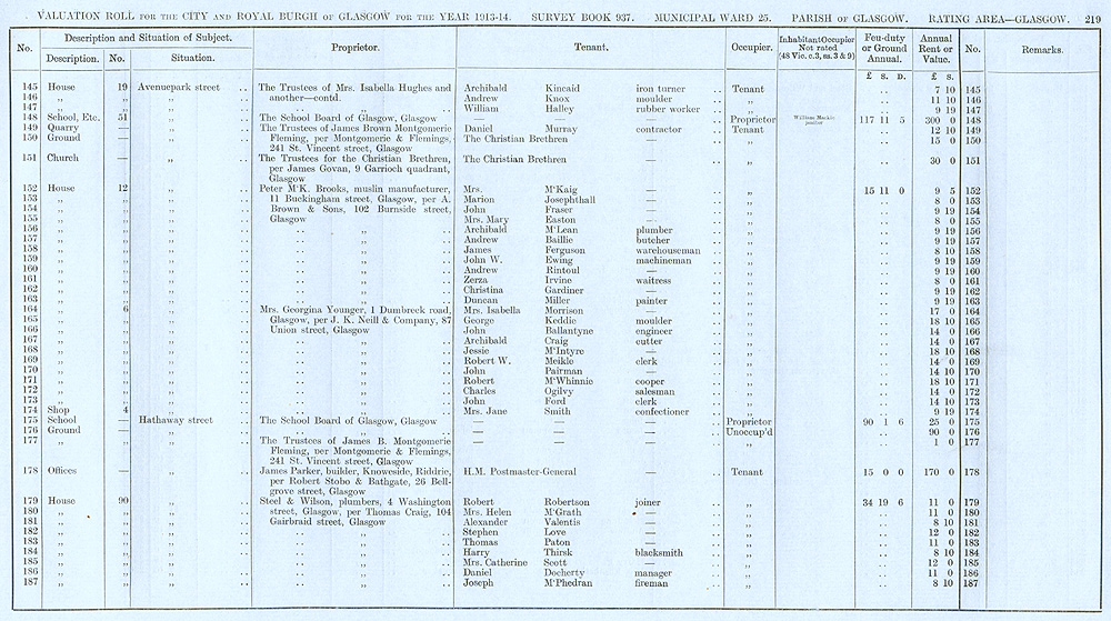 Glasgow Valuation Roll VR 1913-14, Ward 25, p219