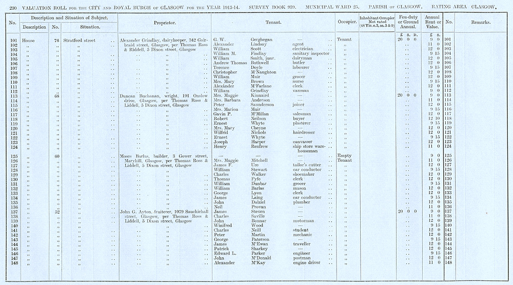 Glasgow Valuation Roll VR 1913-14, Ward 25, p230
