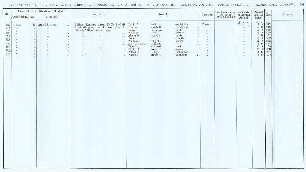 Glasgow Valuation Roll VR 1913-14, Ward 25, p233