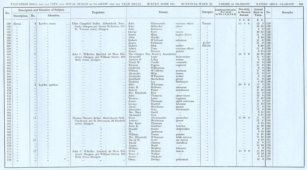 Glasgow Valuation Roll VR 1913-14, Ward 25, p243
