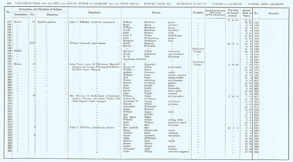 Glasgow Valuation Roll VR 1913-14, Ward 25, p244