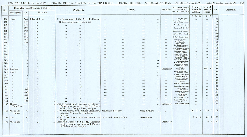 Glasgow Valuation Roll VR 1913-14, Ward 25, p249