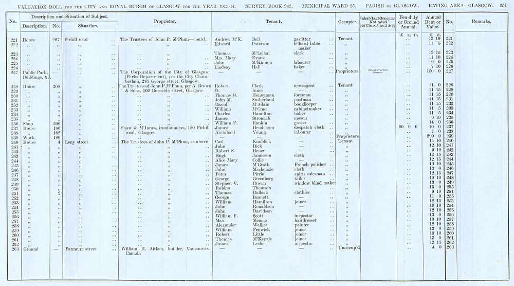 Glasgow Valuation Roll VR 1913-14, Ward 25, p251