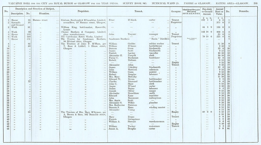 Glasgow Valuation Roll VR 1913-14, Ward 25, p253
