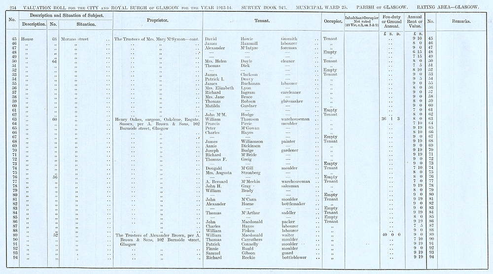 Glasgow Valuation Roll VR 1913-14, Ward 25, p254