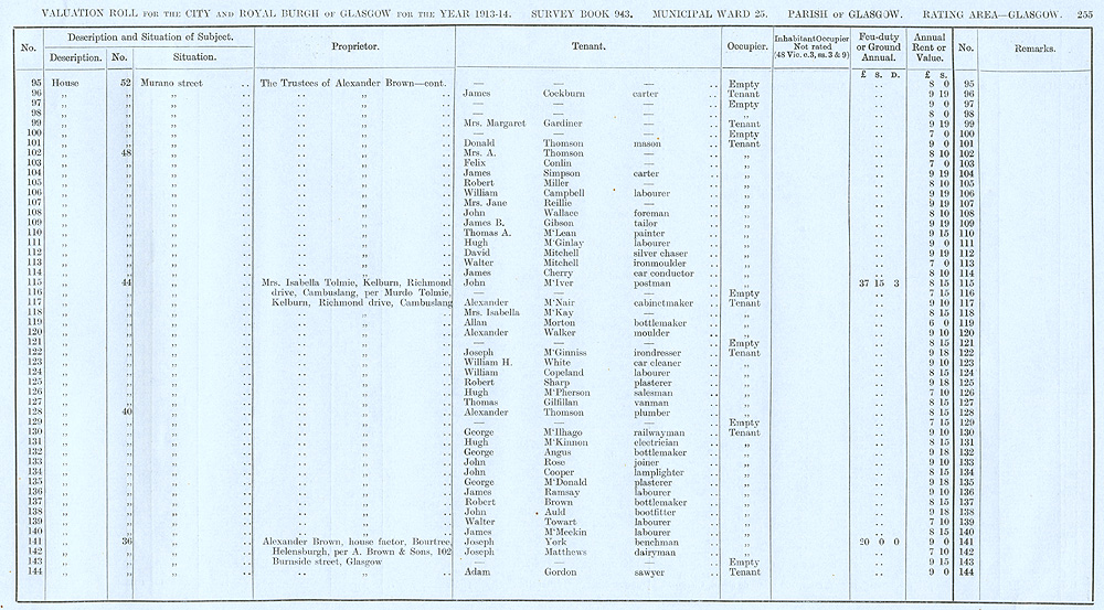 Glasgow Valuation Roll VR 1913-14, Ward 25, p255