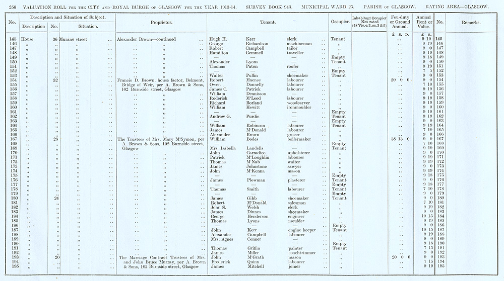 Glasgow Valuation Roll VR 1913-14, Ward 25, p256