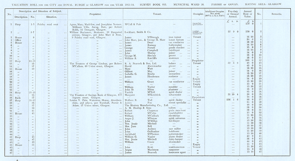 Glasgow Valuation Roll VR 1913-14, Ward 26, p049