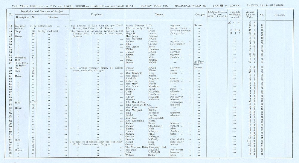 Glasgow Valuation Roll VR 1913-14, Ward 26, p073