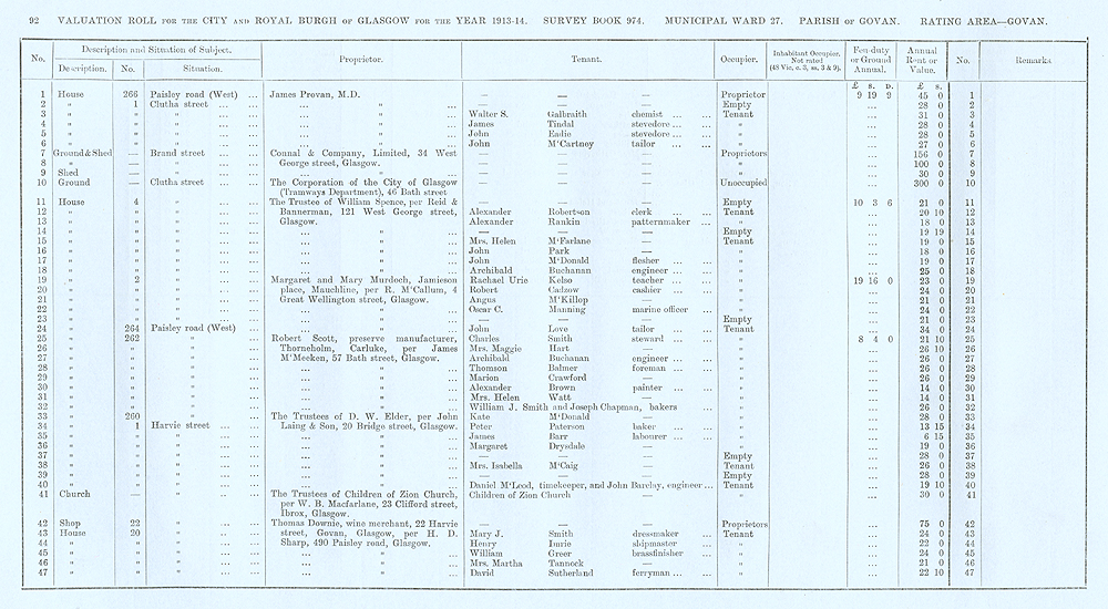 Glasgow Valuation Roll VR 1913-14, Ward 27, p092