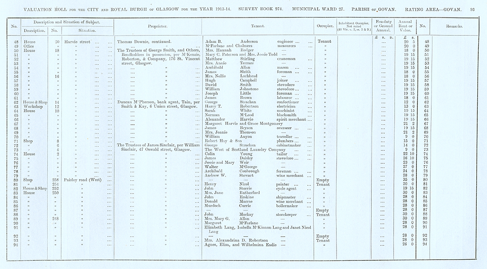 Glasgow Valuation Roll VR 1913-14, Ward 27, p093
