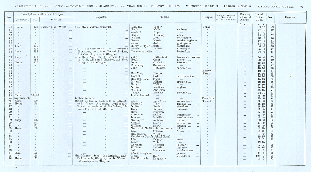 Glasgow Valuation Roll VR 1913-14, Ward 27, p097