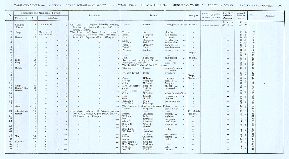 Glasgow Valuation Roll VR 1913-14, Ward 27, p101