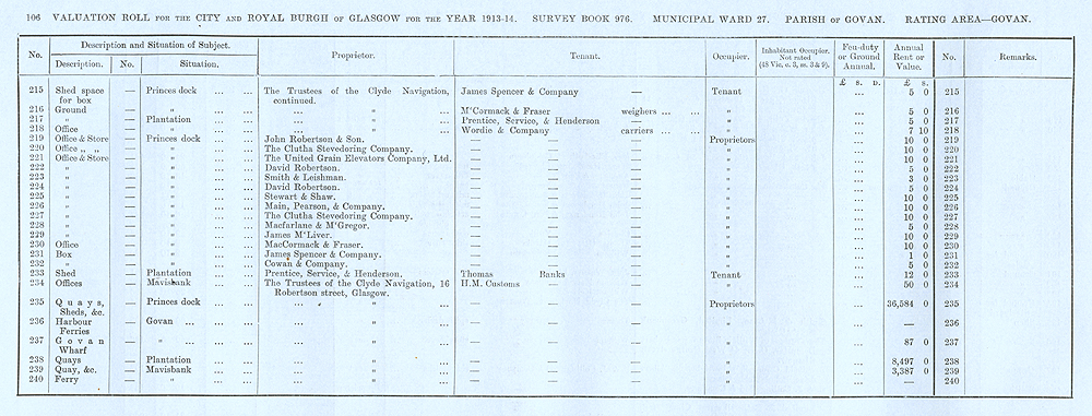 Glasgow Valuation Roll VR 1913-14, Ward 27, p106