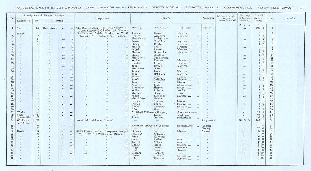 Glasgow Valuation Roll VR 1913-14, Ward 27, p107