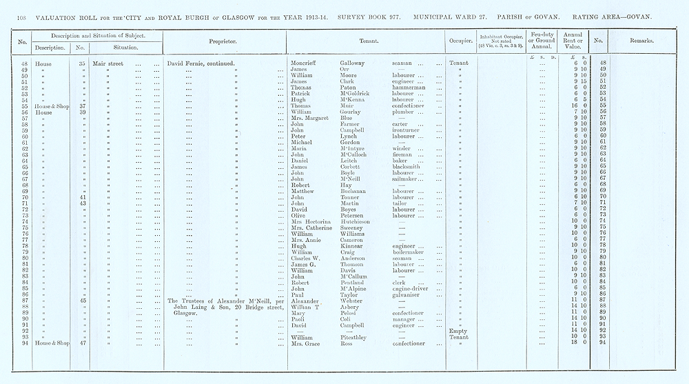 Glasgow Valuation Roll VR 1913-14, Ward 27, p108