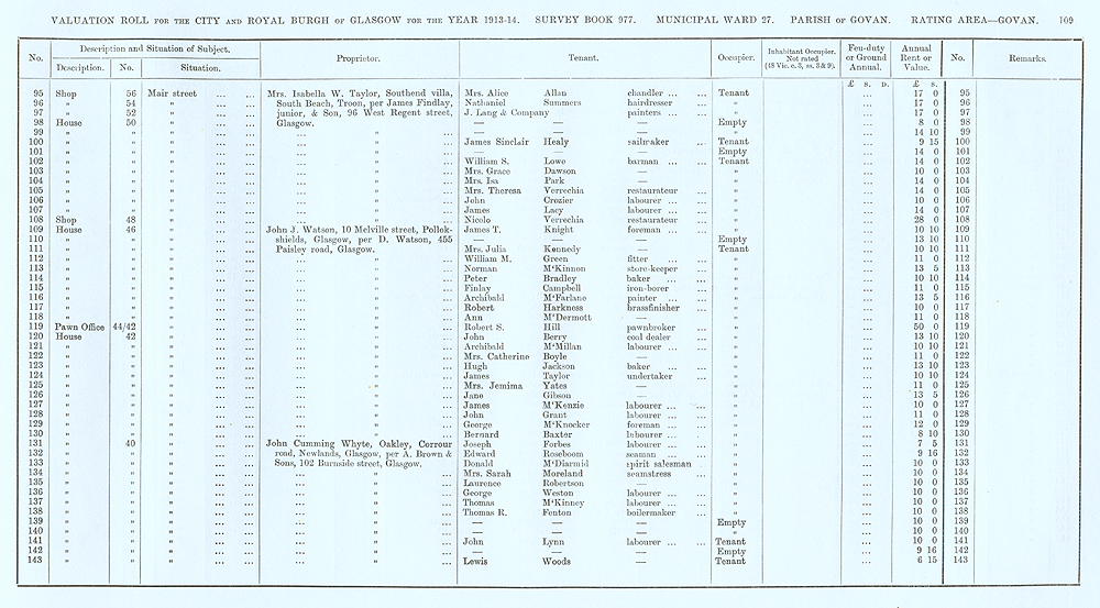 Glasgow Valuation Roll VR 1913-14, Ward 27, p109