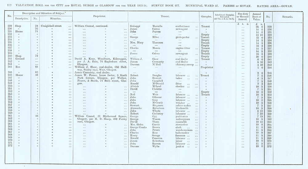 Glasgow Valuation Roll VR 1913-14, Ward 27, p112
