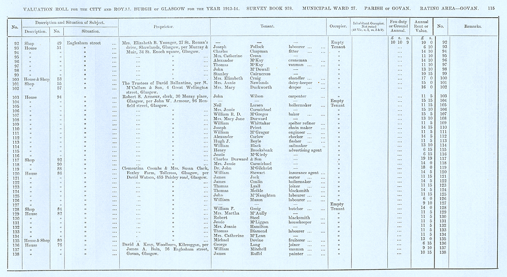 Glasgow Valuation Roll VR 1913-14, Ward 27, p115