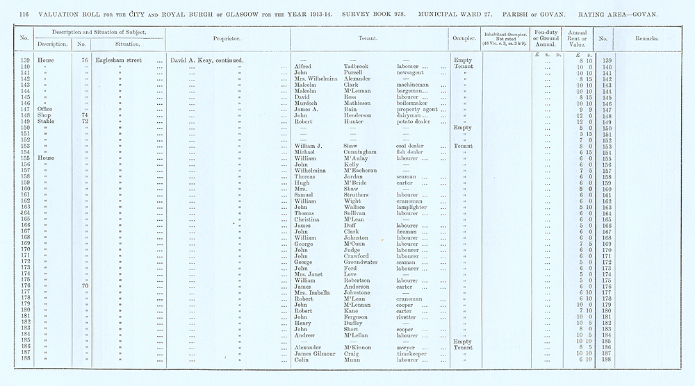 Glasgow Valuation Roll VR 1913-14, Ward 27, p116