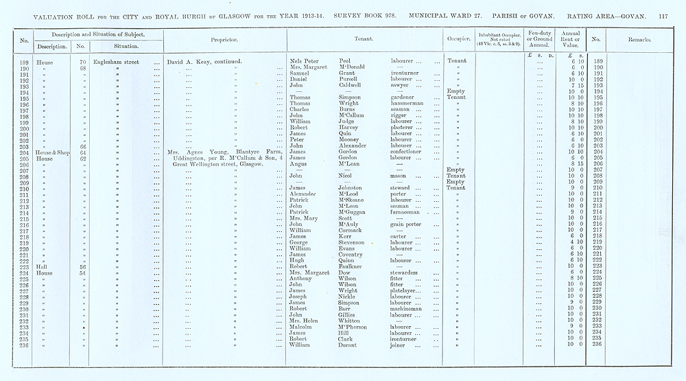 Glasgow Valuation Roll VR 1913-14, Ward 27, p117
