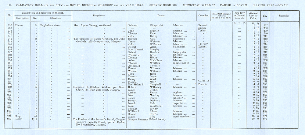 Glasgow Valuation Roll VR 1913-14, Ward 27, p118