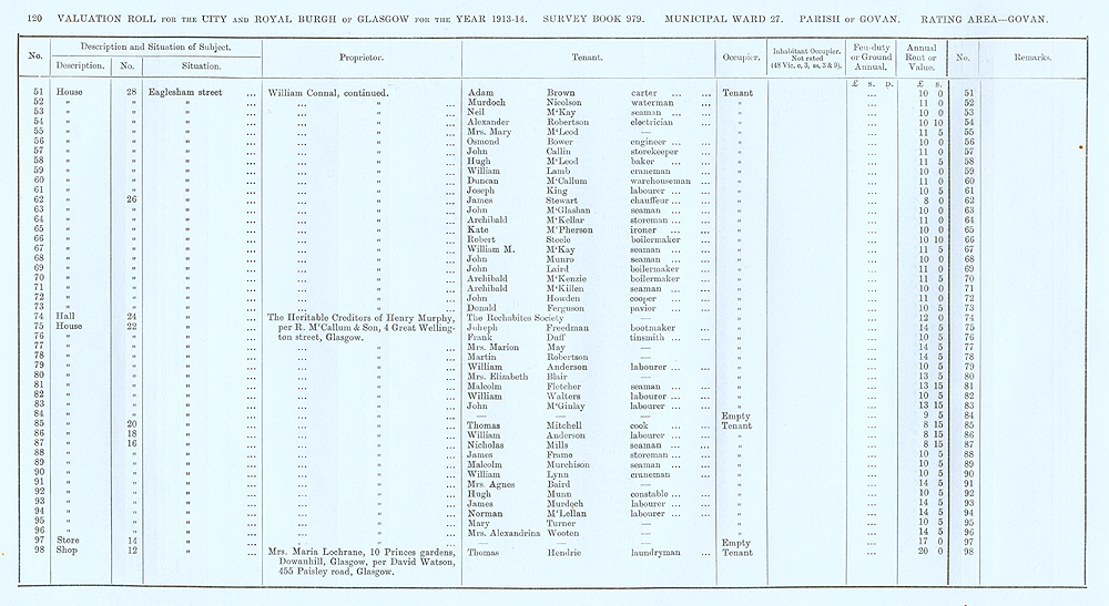 Glasgow Valuation Roll VR 1913-14, Ward 27, p120