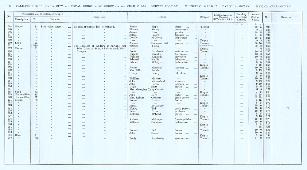 Glasgow Valuation Roll VR 1913-14, Ward 27, p124