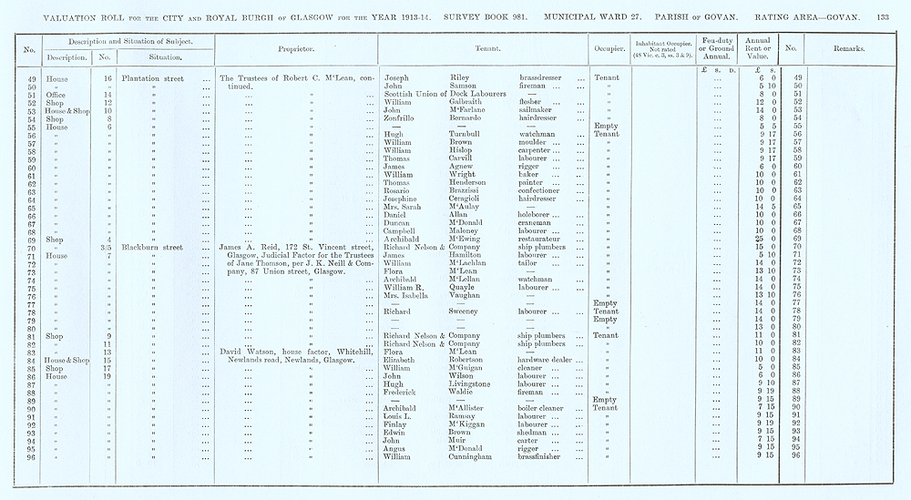 Glasgow Valuation Roll VR 1913-14, Ward 27, p133