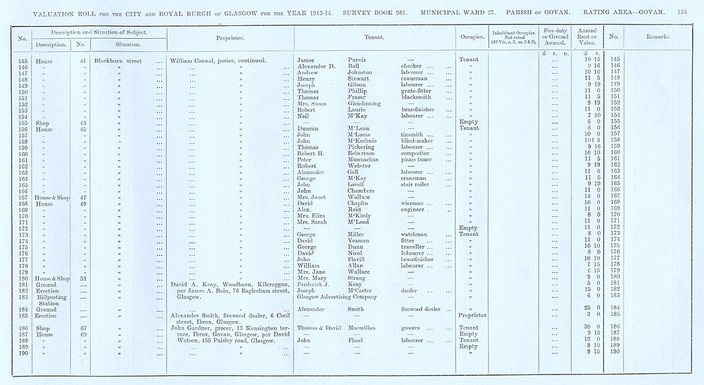 Glasgow Valuation Roll VR 1913-14, Ward 27, p135