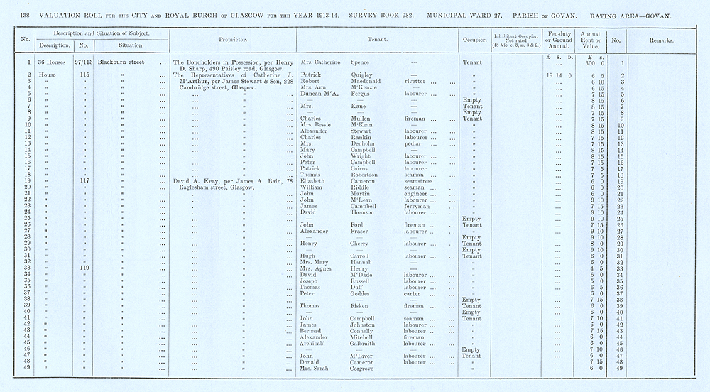 Glasgow Valuation Roll VR 1913-14, Ward 27, p138