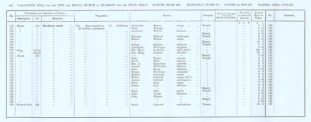 Glasgow Valuation Roll VR 1913-14, Ward 27, p140