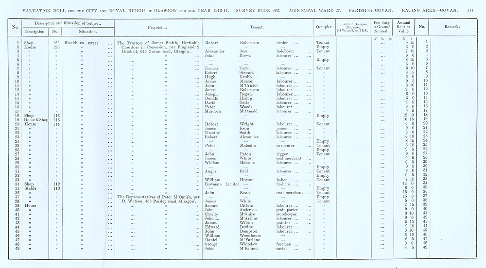 Glasgow Valuation Roll VR 1913-14, Ward 27, p141