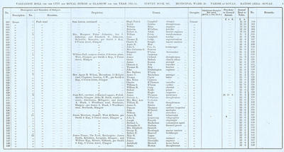 To find the names of occupants or owners of property in a particular Glasgow street in 1913-14, simply type the name of that street into the 'where' box on the Valuation Rolls Search page. You can also enter the name of an area or both an area and a street.