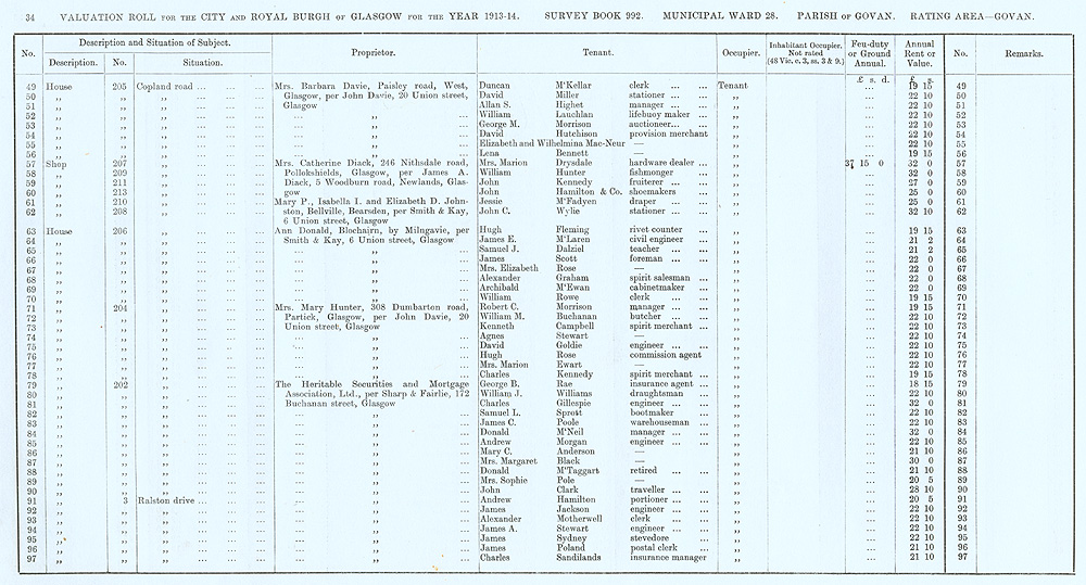 Glasgow Valuation Roll VR 1913-14, Ward 28, p034