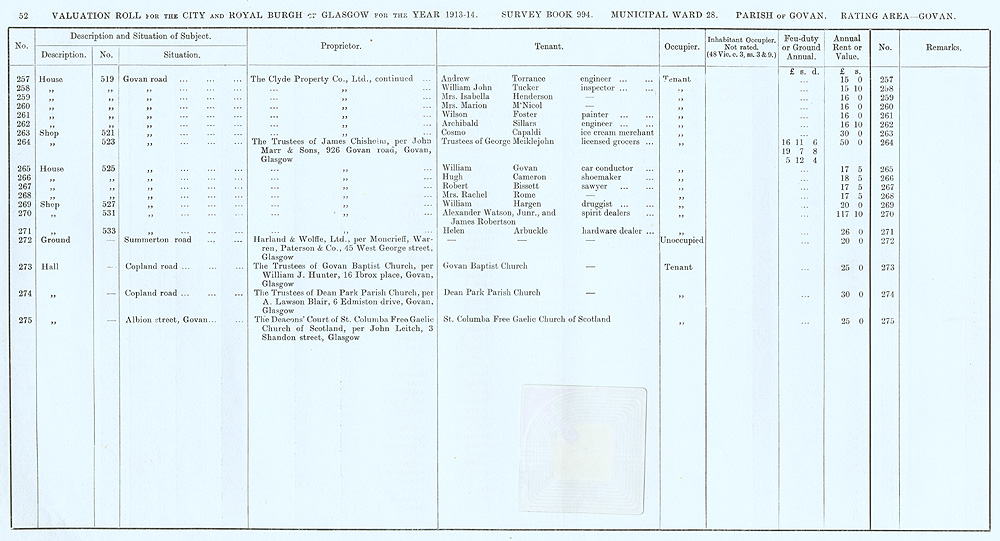 Glasgow Valuation Roll VR 1913-14, Ward 28, p052