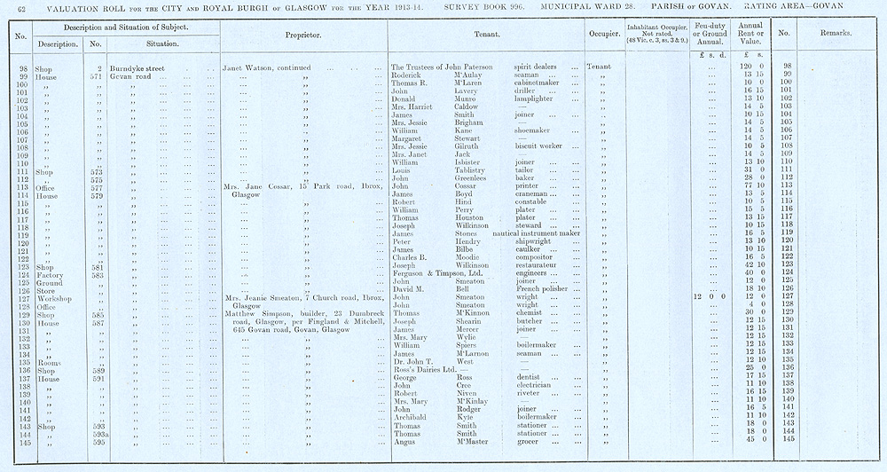 Glasgow Valuation Roll VR 1913-14, Ward 28, p062