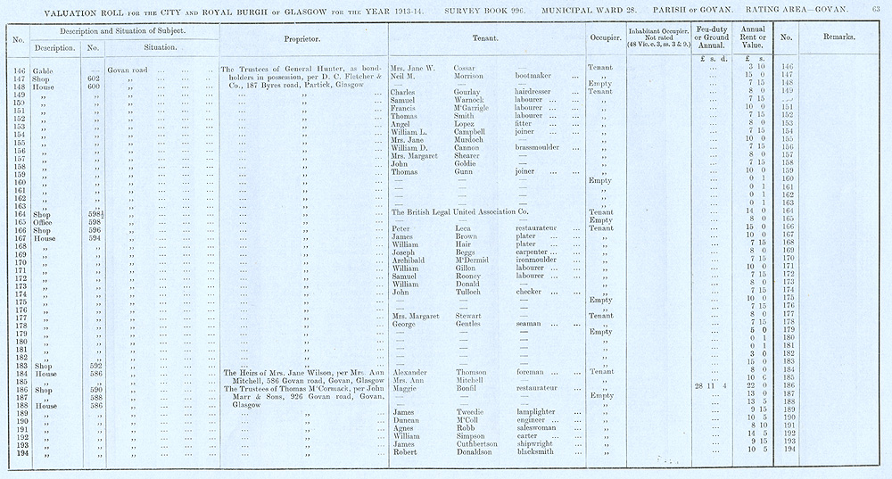Glasgow Valuation Roll VR 1913-14, Ward 28, p063