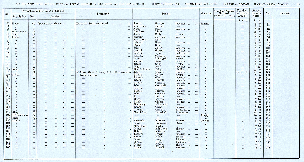 Glasgow Valuation Roll VR 1913-14, Ward 28, p075