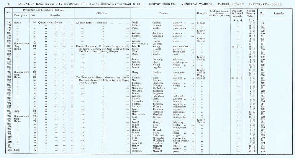 Glasgow Valuation Roll VR 1913-14, Ward 28, p084
