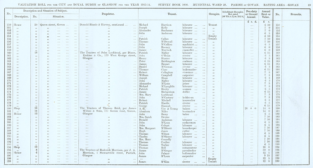 Glasgow Valuation Roll VR 1913-14, Ward 28, p089