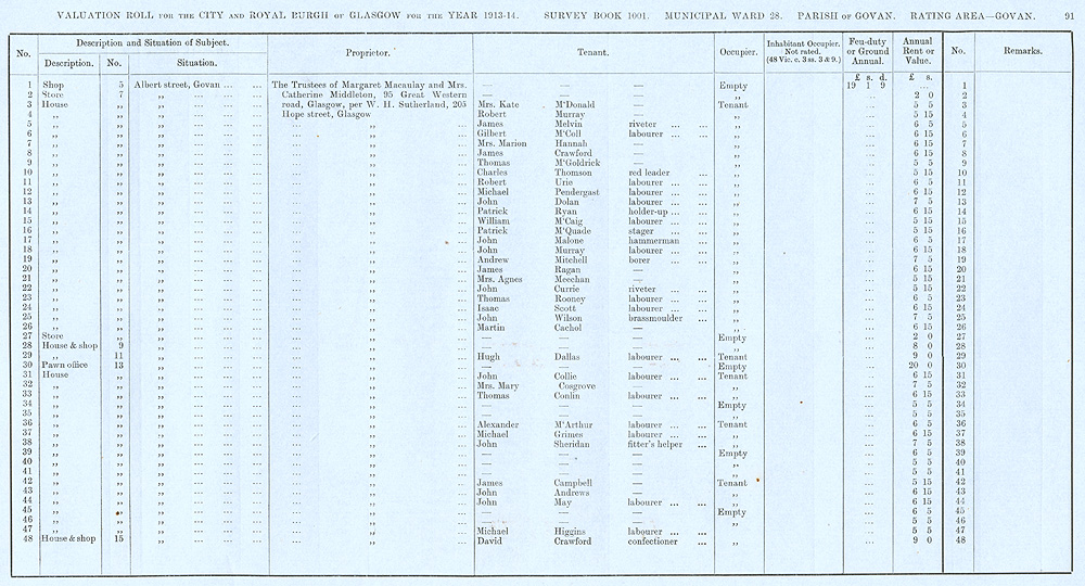 Glasgow Valuation Roll VR 1913-14, Ward 28, p091