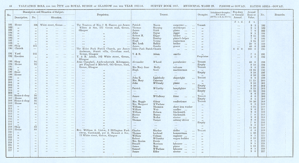Glasgow Valuation Roll VR 1913-14, Ward 29, p064