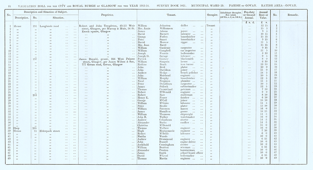 Glasgow Valuation Roll VR 1913-14, Ward 29, p084