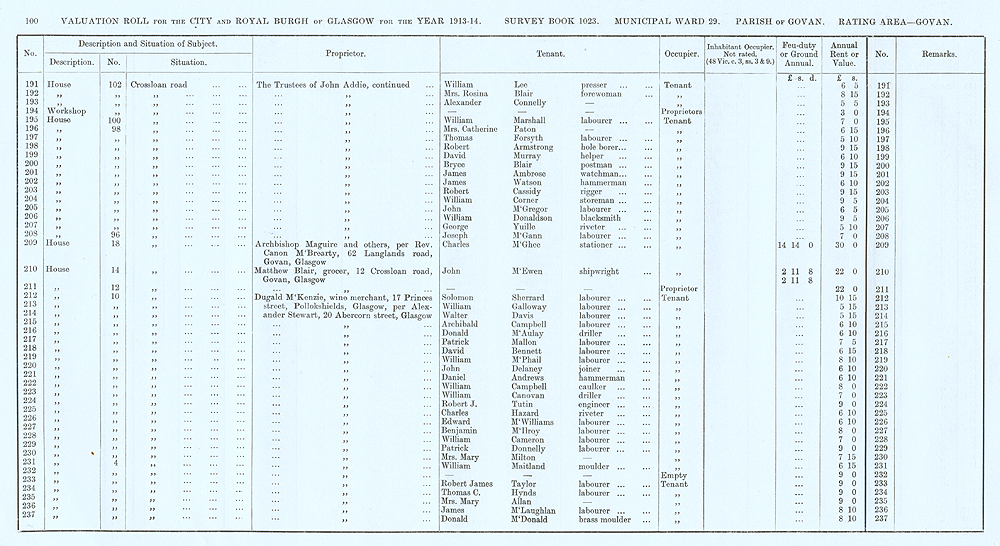 Glasgow Valuation Roll VR 1913-14, Ward 29, p100