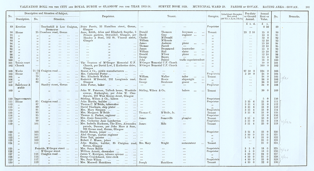 Glasgow Valuation Roll VR 1913-14, Ward 29, p103