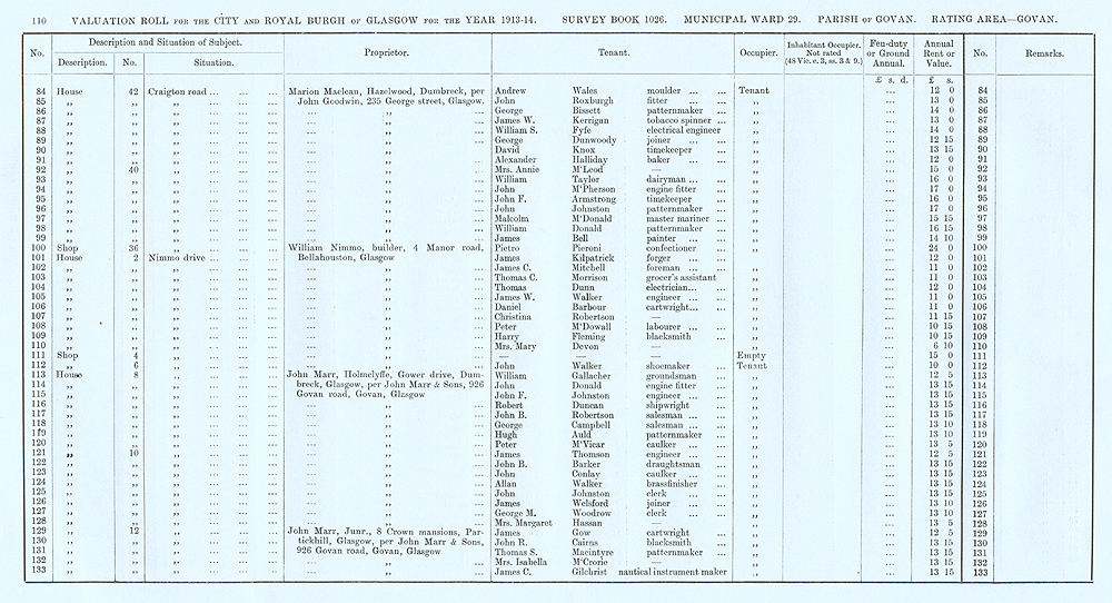 Glasgow Valuation Roll VR 1913-14, Ward 29, p110