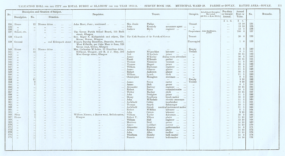 Glasgow Valuation Roll VR 1913-14, Ward 29, p111